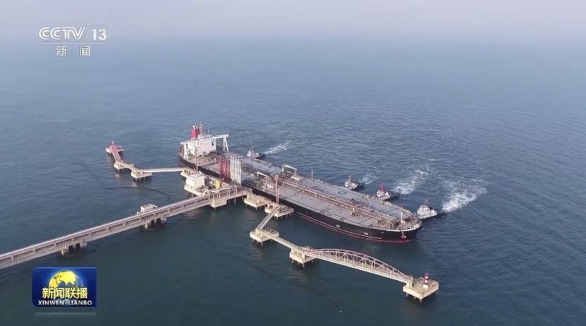 海南自贸港真正开始启动全岛封关后,一艘货船在“一线”放开的主通道洋浦港缓缓靠港(图片来自:央视新闻客户端)