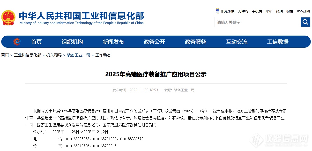 11月25日,中华人民共和国工业与信息化部配备工业一司发布了2025年高端医疗配备推广使用项目公示,共遴选出57个高端医疗配备推广使用项目。