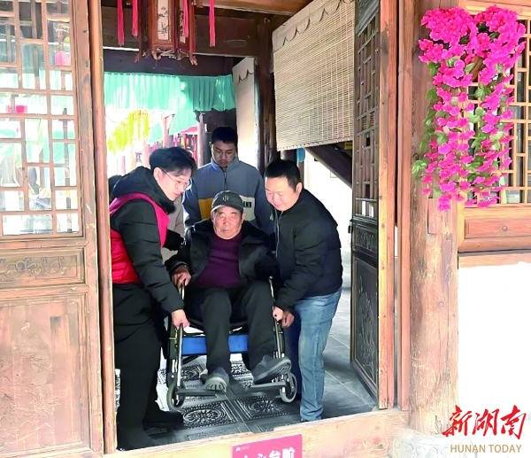 雷锋志愿者悉心护送行动不便的游客。(望城区学雷锋志愿服务促进中心供图)